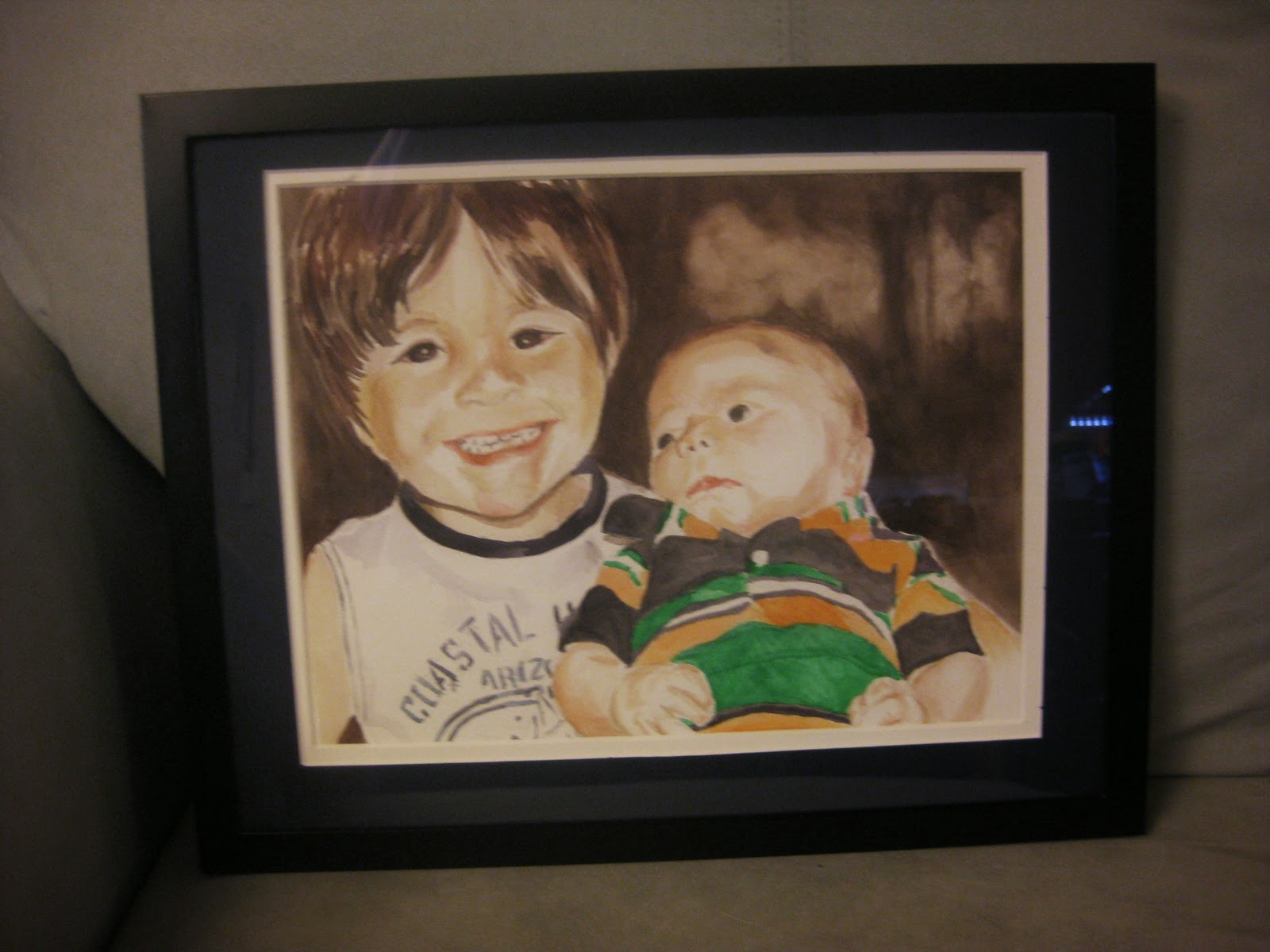 This was a family watercolor portrait. It's really hard to take a good photo once the artwork is in a frame.